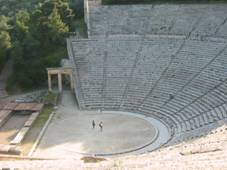 Enkele deelnemers staan bijzonder vroeg op om van een schitterende zonsopgang te genieten. De overige zorgen ervoor om  om 08:00 uur gereed te zijn om per taxi een bezoek te brengen aan het Amfitheather van Epidavros. Na dit bezoek ontbijten we om 10:00 uur en maken we de boot klaar voor vertrek. Deze dag staat in het teken van een relatief kleine tocht naar de klein(st)e haven van deze reis. Het plaatsje dat we zullen aandoen heet Vaathi. De relatief korte afstand geeft een ieder zijn eigen tijd. De een wil laat vertrekken, de ander wil snel weg om gewoon lekker een paar ranken te pakken, de ander wil vroeg weg om snel in de volgende haven te zijn. Behoudens een lekkere buitendouche biedt Vaathi slechts 2 tavernes en 1 schippersbar. Het is bij uitstek een plekje dat enkel en alleen door zeilers bezocht wordt en dus zijn er s’avonds voldoende mogelijkheden om ervaringen uit te wisselen.