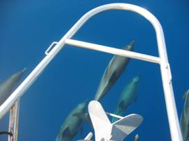 Wederom vroeg opstaan vanwege wederom een leuk voorstel. Omdat Hydra goed beschut ligt wordt het er snel bijzonder warm. Besloten is om snel de boodschappen te doen en een ‘Floating Breakfast’ in een verscholen baai (niet op de kaart) te nuttigen. Na circa een klein uurtje varen wanen we ons dan ook allen op de wereld in deze helder blauwe baai. Na het ontbijt, zwemmen en de inmiddels beroemde en gewaardeerde zeemans douche vervolgen we onze reis naar het eiland Nisos Trikkeri vanwege de grote kans om dolfijnen te zien. Groot is dan ook onze vreugde als we eindelijk kennis mogen maken met deze vrolijke en nieuwsgierige zeedieren. Na het spelen met deze dieren (met de boot vol vermogen en eventueel op eigen risico zelfs zwemmen) vervolgen we onze reis naar het eiland Spetsas. Weer een geheel ander plaatsje verdeelt in oude en nieuw Spetsas.