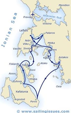 De Ionische Eilanden liggen aan de westkust van Griekenland. Het gebied omvat 7 grotere en een aantal kleinere, vaak onbewoonde eilanden. Er is keuze genoeg om aan te meren. Er zijn dorpjes die rust bieden, er zijn ook plekken die wat meer vertier bieden. Lefkas Marina, onze thuishaven, ligt in het hart van de Ionische Zee. Naast vertrek vanuit Lefkas stad kunnen wij ook vertrek vanaf Lefkas Nidri aanbieden. Hierdoor kun je de keus maken om koers te zetten naar het noorden (Corfu) of naar het zuiden (Zakynthos). Gebied is eveneens goed beschut en de gemiddelde vaar afstanden liggen tussen de 15 tot 20 nautische mijlen per dag. Plaatsen die aangedaan zullen worden zijn o.a : Lefkas stad, Nidri, Sivota, Vaathis, Vounagi en Paleros.